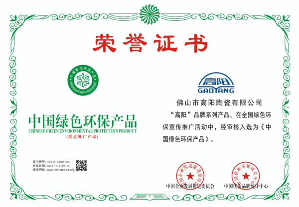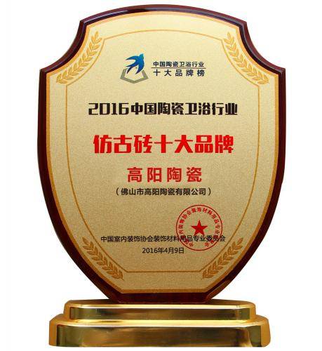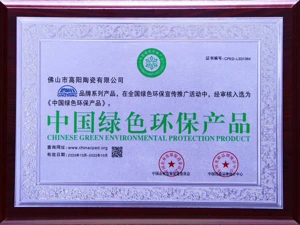 憑借優(yōu)越的產(chǎn)品質(zhì)量和創(chuàng)新設(shè)計(jì),高陽(yáng)陶瓷榮獲了“綠色建材產(chǎn)品”“中國(guó)建筑衛(wèi)生陶瓷十大城鄉(xiāng)品牌”“一線陶瓷品牌”等多個(gè)行業(yè)獎(jiǎng)項(xiàng)。
